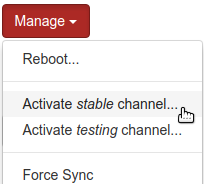 If you want to upgrade manually, you can click on the Activate stable channel option in the Manage menu on the device page of the device you want to upgrade. This will install the (probably already downloaded) new version and reboot the device once.
